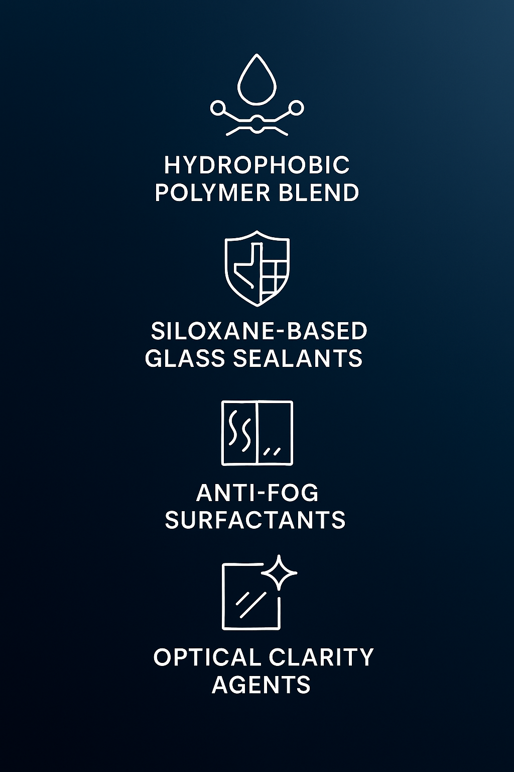 Creates the ultra-slick, water-repelling layer that makes rain bead up and slide away instantly.